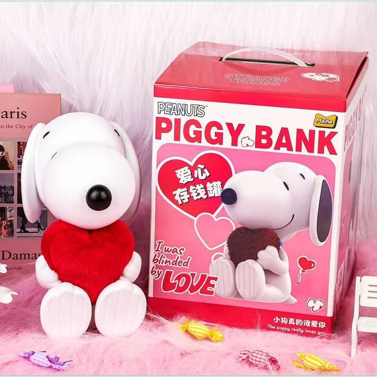 Capture the loving spirit of everyone's favorite beagle with this adorable Snoopy with Heart Coin Bank. This charming and nostalgic piece isn't just a place to save your spare change; it's also a delightful decorative figurine that brings a touch of classic Peanuts charm to any space.