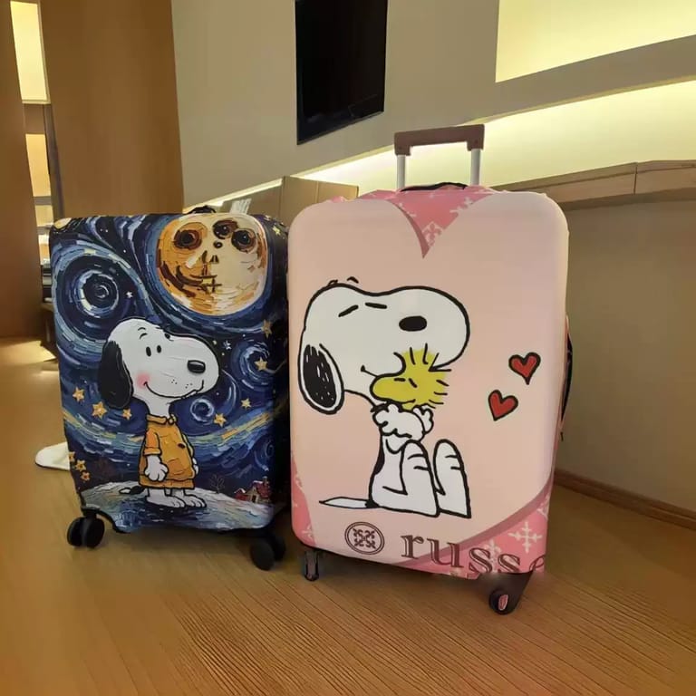 Featuring a playful Snoopy illustration with vibrant colors and cute details, this cover turns any ordinary suitcase into a standout travel piece.